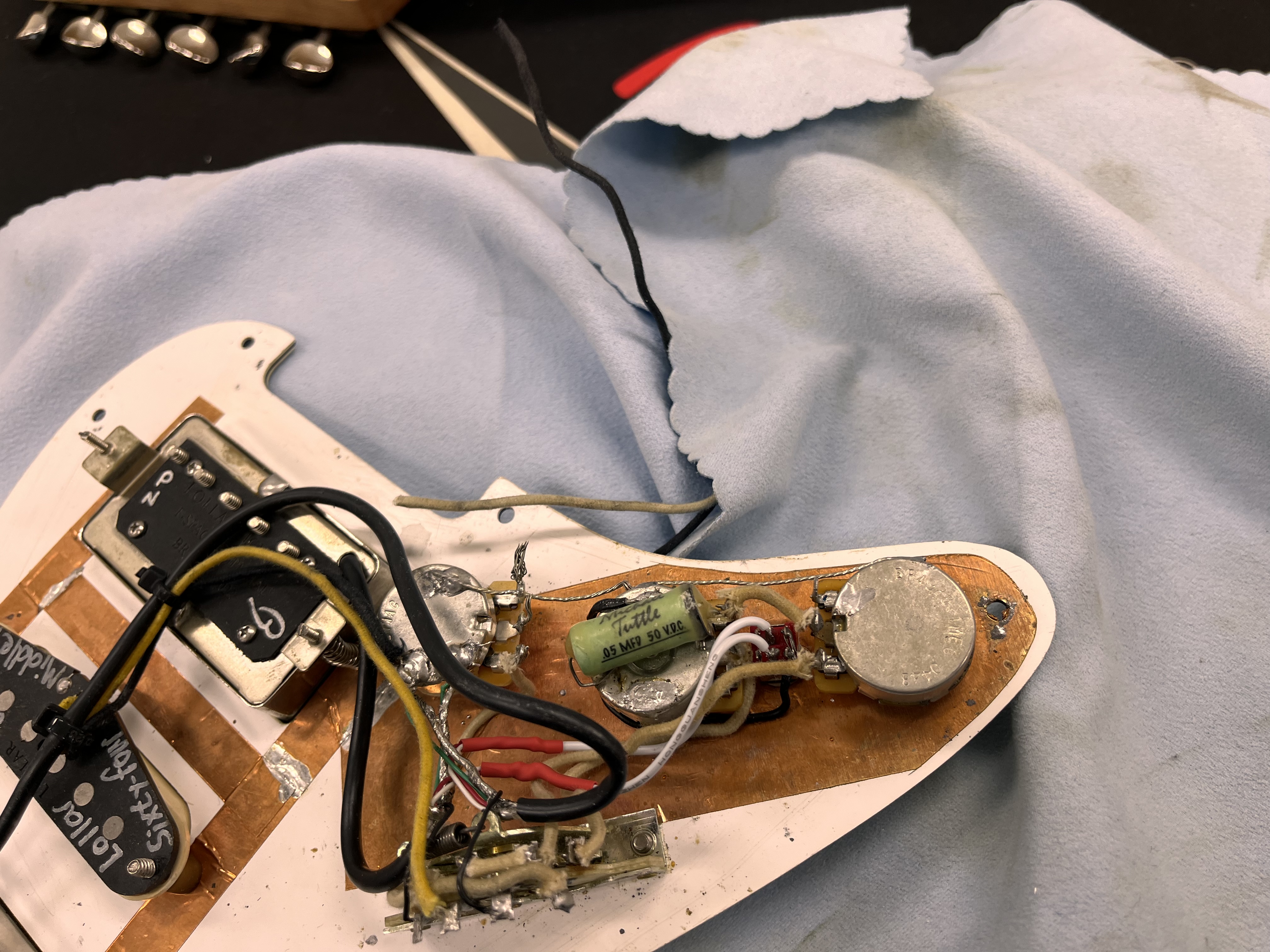 일렉기타 배선의 구조와 작동 원리를 이해하고, 직접 배선 작업과 문제해결을 할 수 있는 능력을 습득합니다. 일렉기타 회로의 기본구조를 학습하고 회로도를 그려 직접 납땜 하는 실습을 진행합니다.