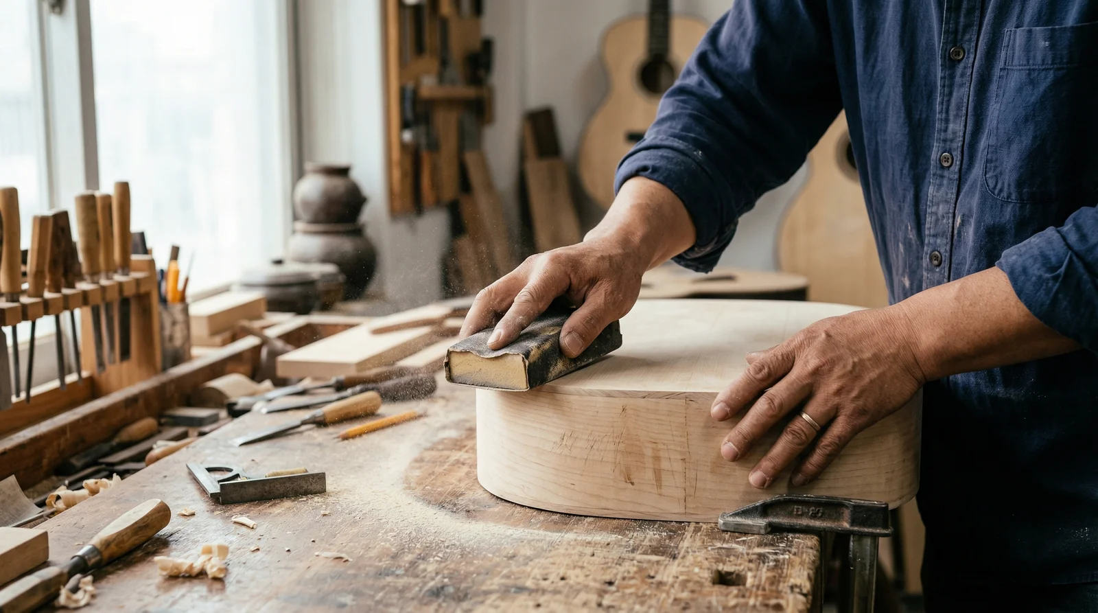 일렉기타를 제작하는 기초 목공, 도장, 배선, 조립 및 조정에 대한 강의입니다. 기초 재료학, 배선학, 기계가공 및 도장 등의 이론수업과 탬플릿을 이용한 일렉기타 제작 실습을 진행합니다. 제작 과정에서 연계되는 리페어 실습도 함께 학습합니다.